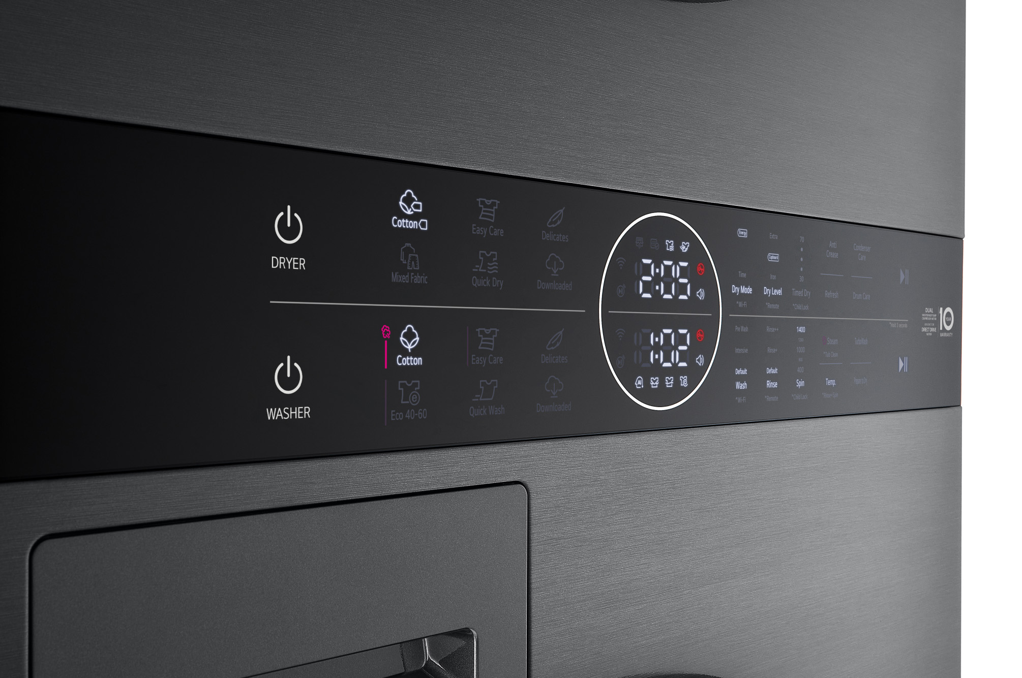 LG WashTower, üst kısmında kurutucu ve alt kısmında yıkayıcı bulunan tek bir ünitedir. Kontrol paneli ortada olduğundan kurutucunun paneline ulaşmak için tabureye ihtiyacınız yoktur. Ara bağlantı kitine gerek yoktur.